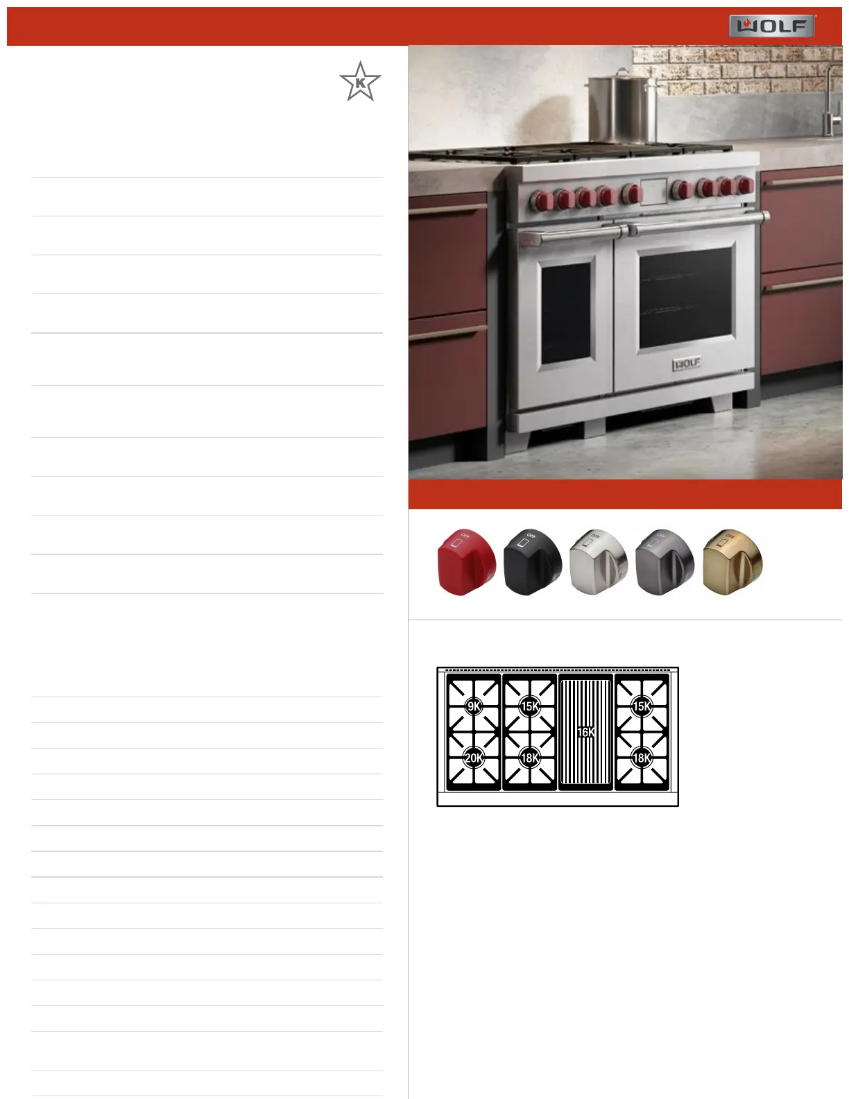 RANGETOP SPECIFICATIONS