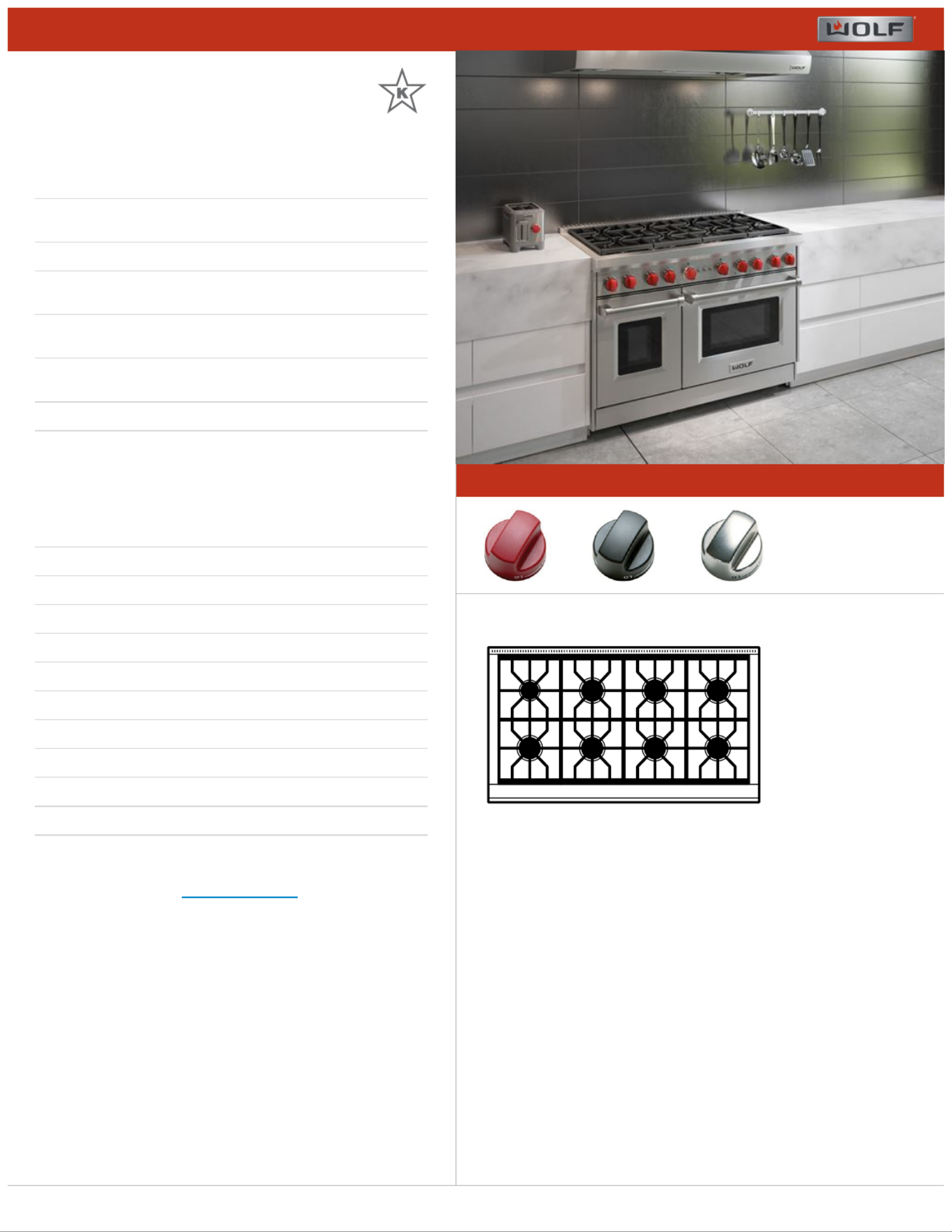RANGETOP SPECIFICATIONS