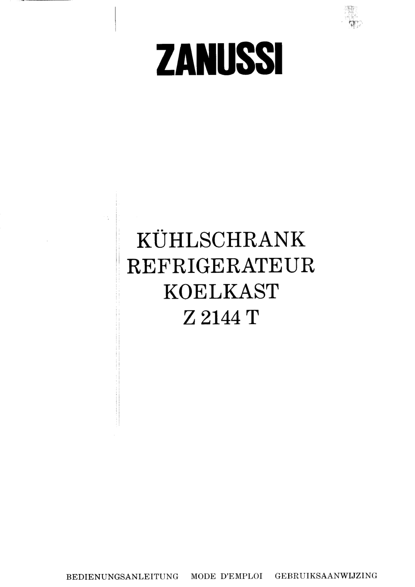 Zanussi z 2144 t Handleiding
