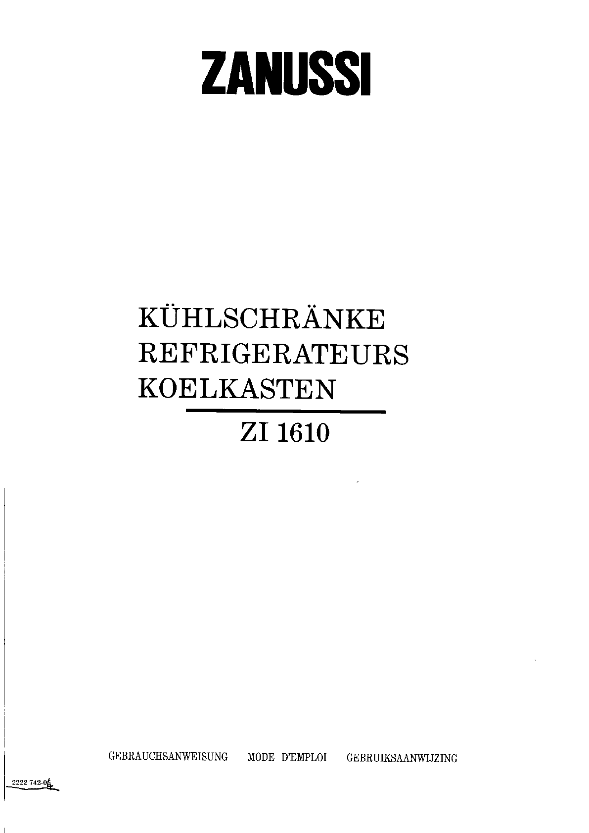 Zanussi zi 1610 Handleiding